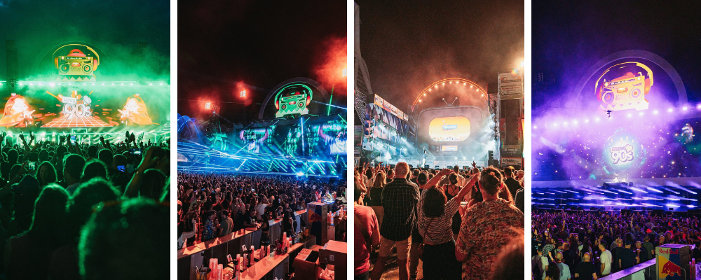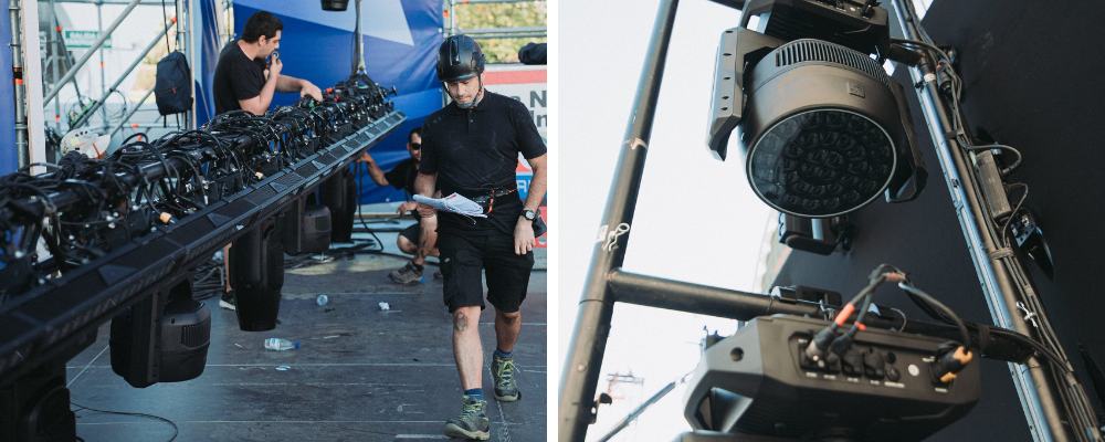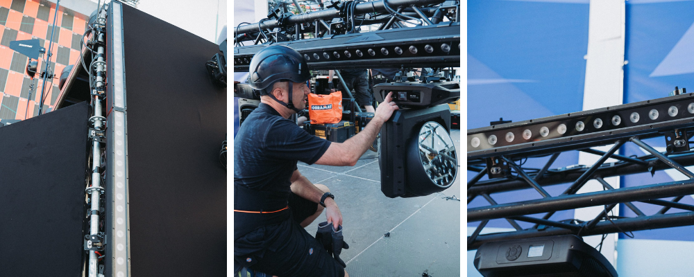 Pero el planteo técnico fue más allá del objeto central. Los Otos W12 se utilizaron también como wash principal del escenario, y el diseño incorporó una disposición dinámica que permitía acompañar a los artistas en vivo, los sets de DJs y las transiciones musicales entre cada bloque. “Todo el wash del escenario fue con los Otos, incluso las candilejas. Buscábamos un diseño que no solo iluminara, sino que generara climas. Y esa combinación fue clave”, asevera.