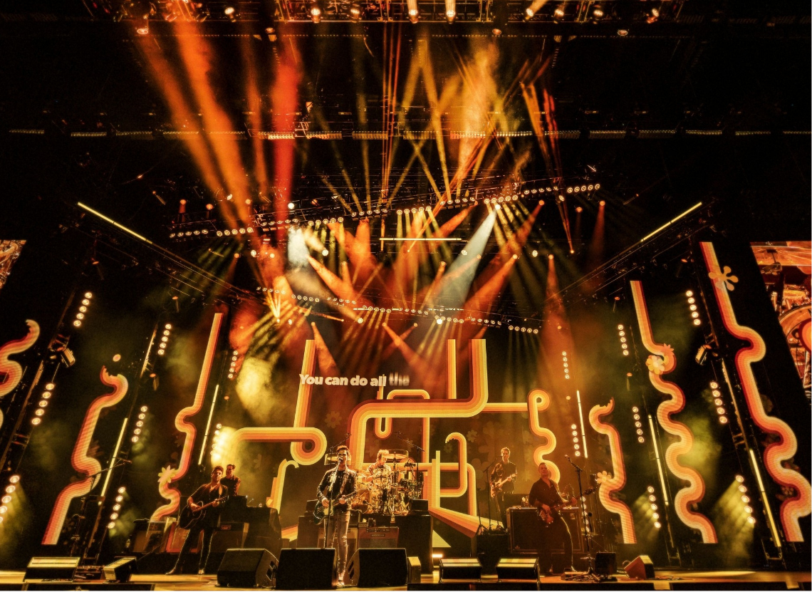 El diseño de iluminación de Brent Clark, elaborado con gran sensibilidad artística, acompañó cada uno de esos momentos en los que las voces de los fans llenaban el gran recinto con interpretaciones emotivas de sus canciones favoritas. Decidido a crear looks refrescantemente originales a lo largo de la actuación de su cliente, Clark no iluminó cada coro con blinders. En ocasiones, recurrió a las 38 barras COLORado PXL Curve 12 de CHAUVET Professional suministradas por Neg Earth.