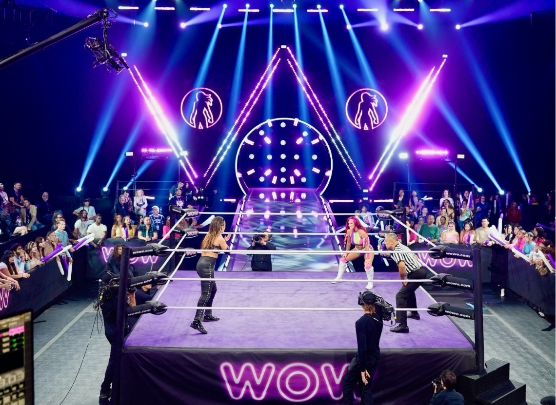 No es de extrañar que el acrónimo de la popular serie de televisión WOW – Women Of Wrestling también sean esas tres simples letras: WOW. Este tema de marca está a la vista de todos en la temporada actual de la serie, ya que las dos W de esta expresión poderosamente evocadora se deletrean con luz gracias a 64 listones motorizados COLORado PXL Curve 12 de CHAUVET Professional suministrados por Felix Lighting.