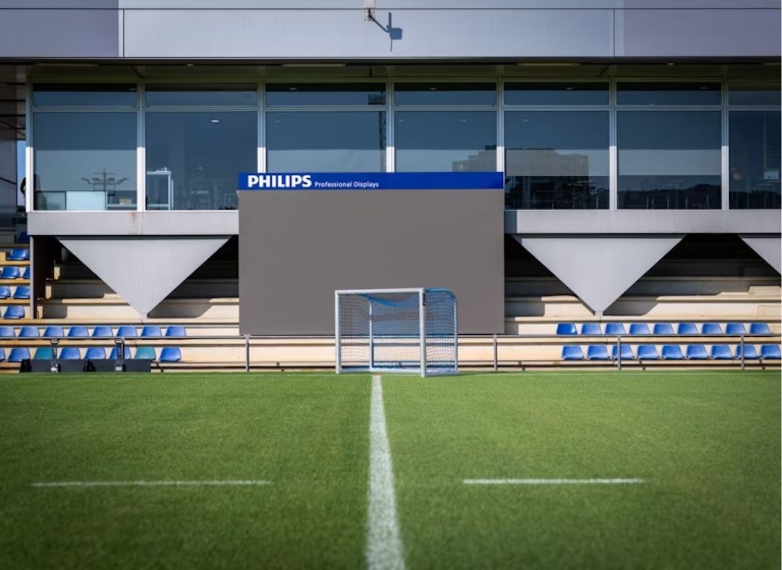 Diseñada a medida para satisfacer las necesidades precisas del equipo técnico y de entrenadores del primer equipo del FC Barcelona, la pantalla Urban LED Serie 7000 de Philips, de gran tamaño, alto brillo y resistente a la intemperie, ofrece una visión ampliada en el impresionante campus de entrenamiento Ciutat Esportiva del club.