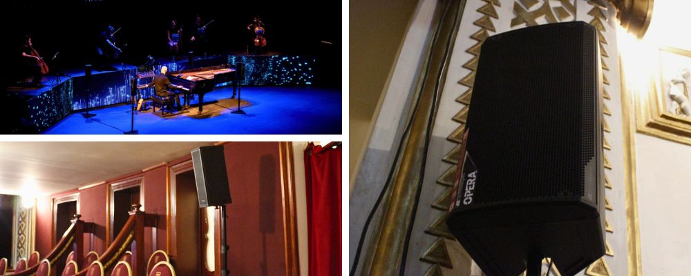 On stage, Aspuru used quadraphonic monitoring using two ES-1203 systems in stereo mode. The main system consisted of a DVA T12 as main L-R, with eight speakers per side, a VIO X206 as infill, an S30N as subwoofers, and various models from the OPERA and MINIBOX series to reinforce each level of the theater.