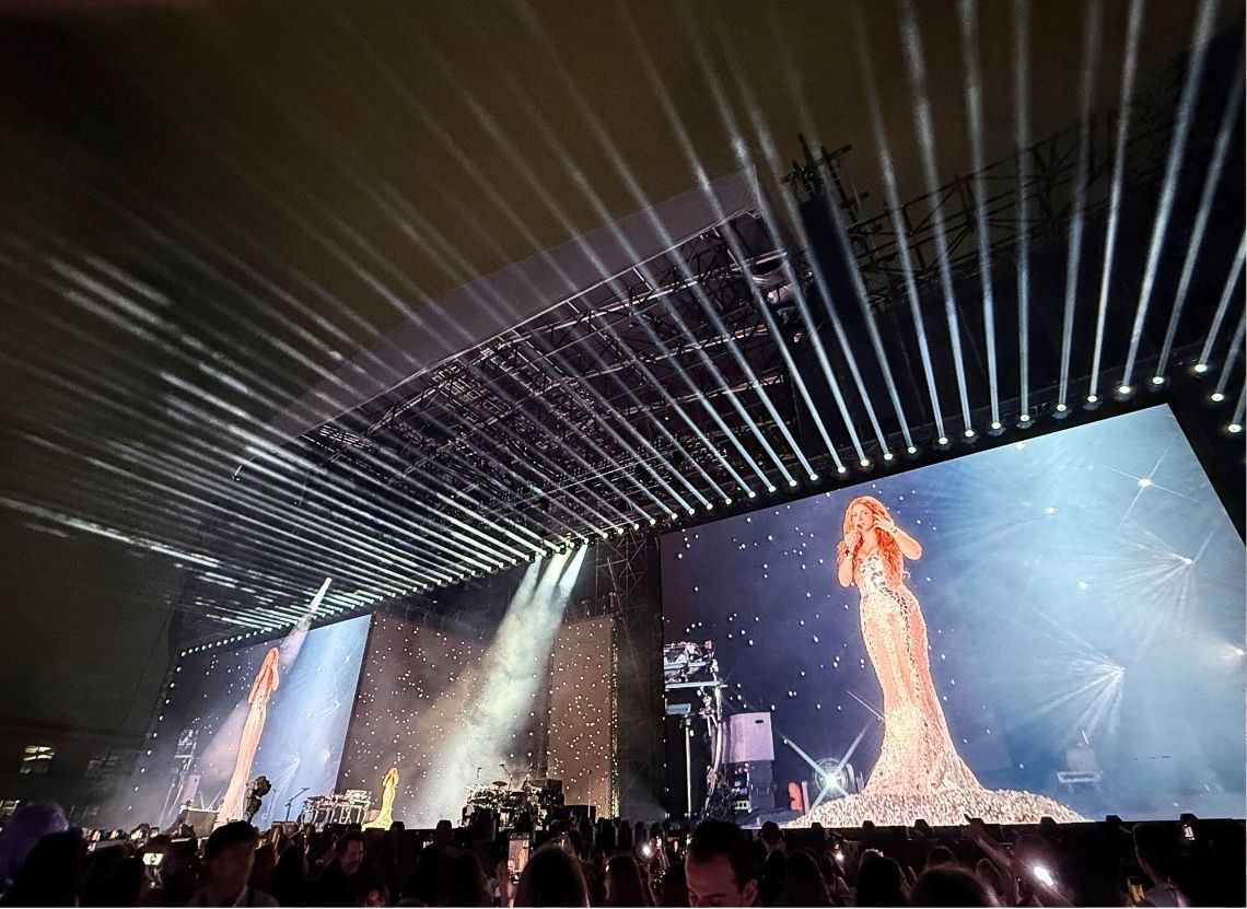 Shakira returned to touring in 2025 after a seven-year break, captivating audiences across North and South America with her charisma, unmistakable voice, and a repertoire full of hits. For her “Las Mujeres Ya No Lloran” world tour, the Colombian superstar wanted a sleek design with big, bold looks for stadium shows and that’s exactly what lighting designer Dan Norman from design firm Silent House delivered with the help of 202 Elation PROTEUS HYBRID MAX luminaires, supplied by PRG.
