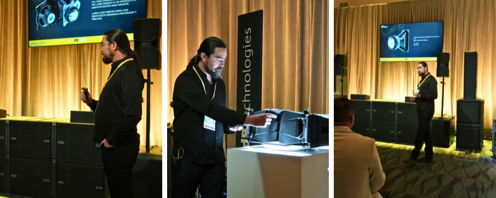 “This system is called the VIO L1608. It’s a three-way ultra-compact system, equipped with a 1600-watt RMS amplifier divided into channels for low, mid, and high frequency drivers. It also features a rigging system with one-degree resolution,” explained Araiza.