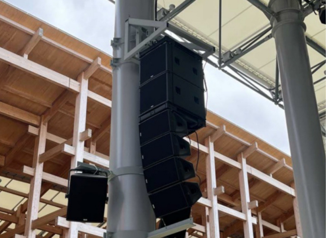 “The amplifiers are NXAMP4x2MK2, and the connections are analog. At first, we were thinking of using point sources for the main speakers, but since there is a pavilion of another company right next door, we thought it would be better to use speakers that could control the sound, so we decided to install a line array.”