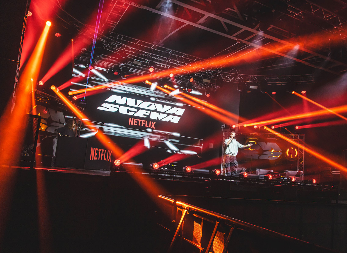 The latest series of Italian talent show Nuova Scena – Rhythm + Flow Italia, which scouts out some of the best rising star rappers –kicked off to an electric startwith a launch party staged at famous Milan live music venue and nightspot, Fabrique, complete with a dazzling lightshow created, programmed and delivered by Sergio Cattaneo of design studio Cue s.r.l.
