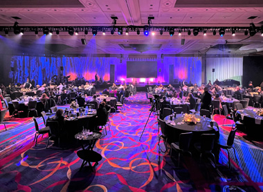 “My goal walking into this project was to not have any of the house lights on for this event; I wanted the room lit with color,” said Harrison. “The Rogue BeamWashes were my main color creator. They made it easy for me to change the level of colorization throughout the evening. They truly pack a punch. I zoomed them all the way our for a wash during dinner and meeting portions, but then I zoomed them all the way down to a nice tight narrow beam for our song special and Kabuki drop/car reveal celebrations.”