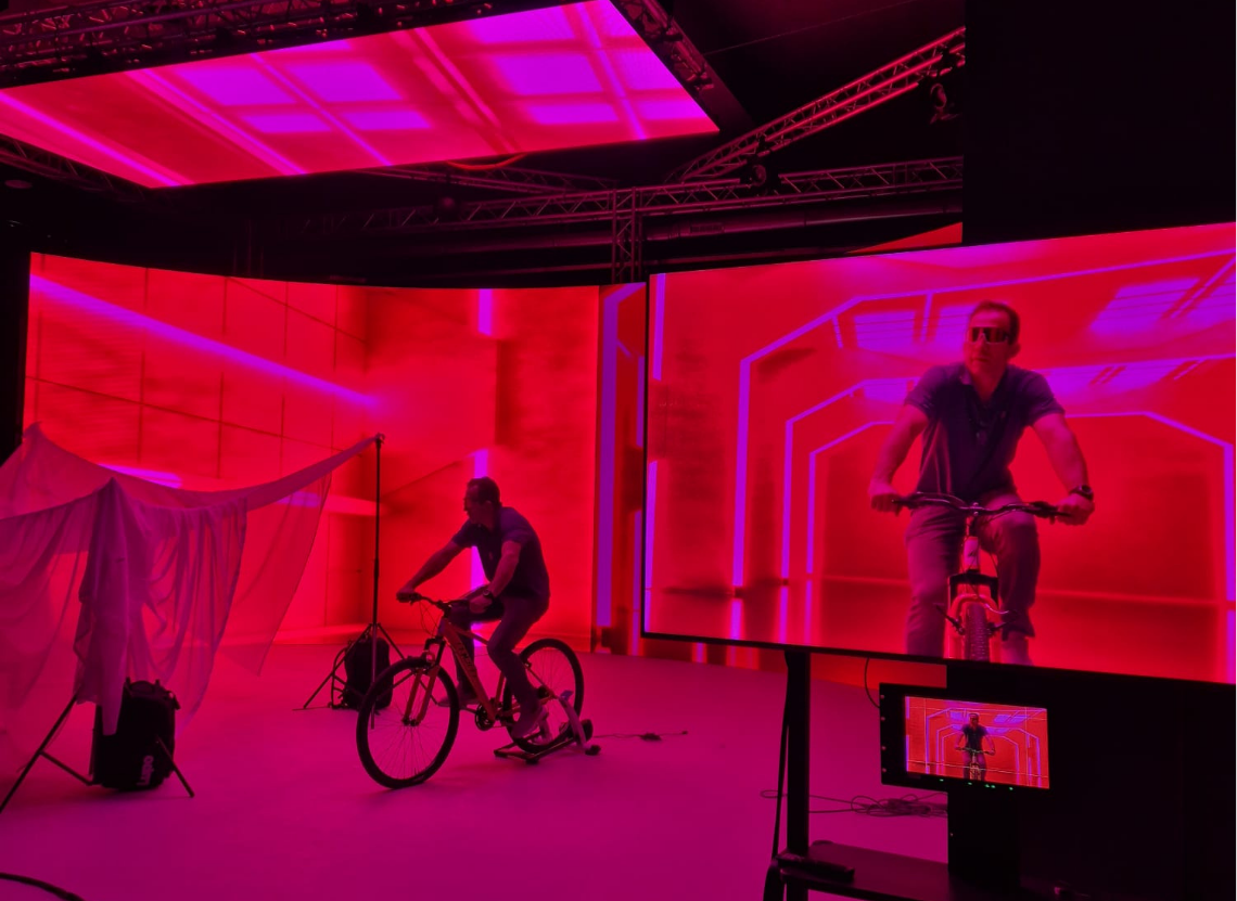 En el corazón del laboratorio Virtual Studio Production (VSP) se encuentra un volumen LED curvo compuesto por paneles Alfalite Modularpix Pro 1.9 ORIM VP XR, con una superficie de 48 m² (12x4m), complementado por un techo LED de 10 m² con paneles LedSky ModularPix Pro 3.9 HB VP XR para una iluminación y reflejos inmersivos. La instalación LED está totalmente integrada con una cámara profesional RED, un sistema de tracking de cámara MOSYS para una sincronización precisa en tiempo real, y un sistema de captura de movimiento MOVELLA que permite animaciones dinámicas de personajes y actuaciones en XR. Junto con el renderizado en tiempo real mediante Unreal Engine 5 y una infraestructura completa de iluminación y broadcast, el estudio ofrece una plataforma robusta y versátil para la producción de experiencias de realidad extendida, efectos visuales y sets virtuales.