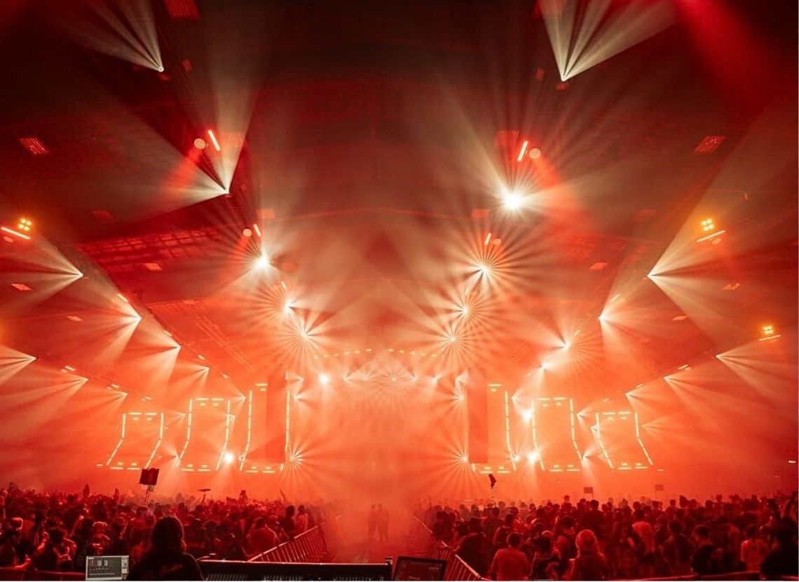“El venue realmente potenció el diseño”, explicó Torres. “La estructura alta, bien proporcionada y con capacidad de carga adecuada nos permitió colgar producción sobre la multitud y sobre el escenario. El espacio nos dio muchas oportunidades para generar grandes impresiones”.