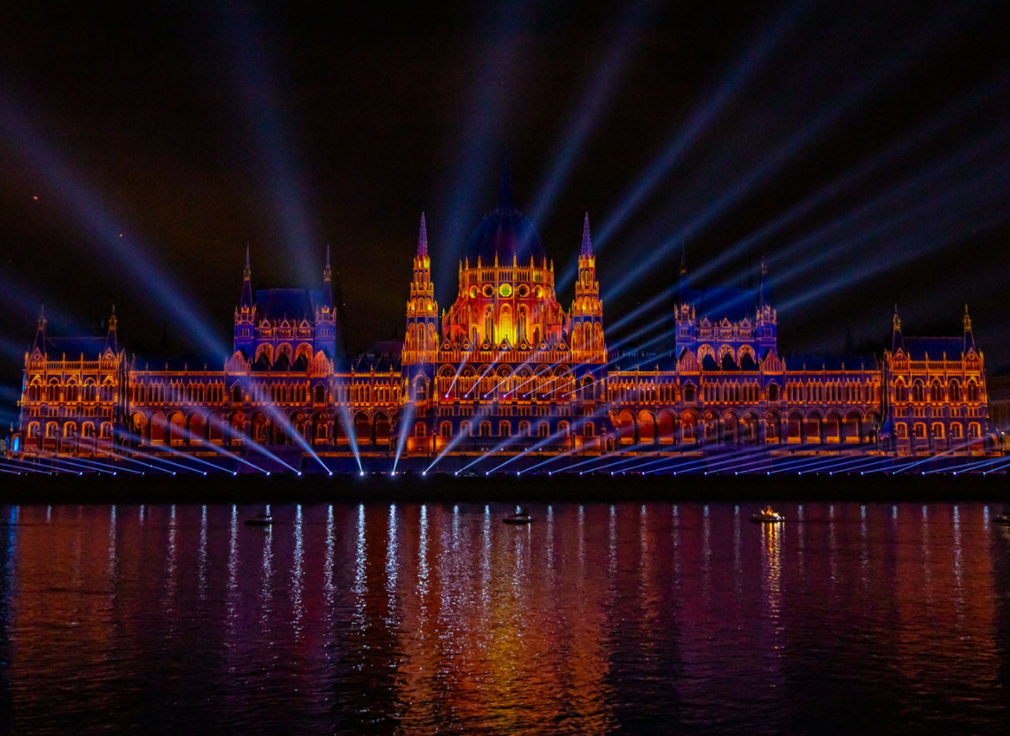 Los equipos móviles de Robe, iBOLT, iFORTE e iFORTE LTXs, jugaron nuevamente un papel fundamental iluminando cuatro elementos arquitectónicos clave: el edificio del Parlamento Húngaro, de 118 metros de ancho; la Galería Nacional de Hungría; el Puente de las Cadenas Széchenyi; y el Puente Elisabeth.