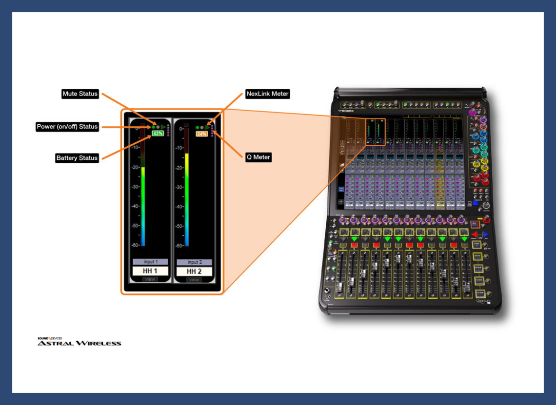 Sound Devices presentó la primera integración de AstralComm con consolas Quantum, estableciendo un verdadero control bidireccional entre los sistemas. Los ingenieros pueden activar funciones de la consola desde transmisores o micrófonos de mano Astral, y ejecutar acciones de Astral desde macros de Quantum, lo que simplifica las operaciones, suma comodidad y abre nuevas posibilidades creativas para mejorar la comunicación con los artistas. En ISE, Sound Devices adelanta la visualización de estado en los channel strips, que incorpora el estado de los transmisores Astral en los medidores de canal de Quantum, incluyendo batería, mute, Q, NexLink y encendido, a la espera de una próxima actualización de software de DiGiCo. En paralelo, la nueva integración de AstralComm con SoundBase ya está disponible, permitiendo cambios de frecuencia, asignación de nombres a transmisores y visualización en tiempo real del medidor Q y del RSSI de NexLink, medición de audio, estado de mute, nombres de canal y frecuencias directamente en SoundBase.